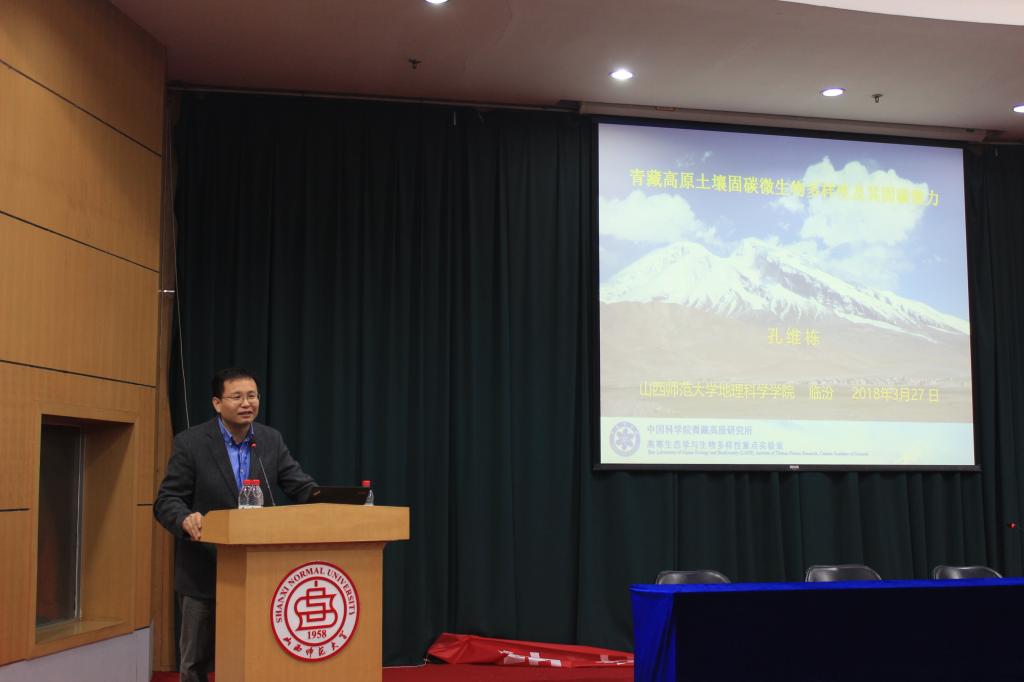 孔维栋研究员首先介绍了青藏高原独特的高度、地貌特征与水系格局,青藏高原被称为世界屋脊、亚洲水塔和世界第三极,是我国生态安全屏障和战略资源储备地。青藏高原有众多的高山山脉,分布着除南北极之外最大的冰山群,滋润着数量众多的河流和湖泊,为近30亿人提供水安全。青藏高原地表环境复杂,包含着冰川、积雪、冻土、江河、湖泊等脆弱的冰冻圈、水圈、生物圈要素,极易受到气候变化影响从而变得更加恶化,是典型的生态脆弱区和气候变化敏感区。孔维栋研究员详细介绍了青藏高原强紫外线、低温干旱、低氧和昼夜温差大等极端环境对土壤固碳微生物物种多样性和群落结构的影响,提出降水量、土壤NH4+和植被是增加固碳微生物生物量的主要驱动环境因子,而pH和干旱度是降低固碳微生物的关键环境因子。孔维栋研究员进一步介绍了固碳微生物与土壤固碳潜力之间的关系,其结果证明其相关性达80以上,其中蓝藻是关键类群,而放线菌和变形菌占很小比例。该报告从土壤微生物、生态功能和环境变化的角度,为我们在土壤生物学的研究提供了新思路,对我们理解青藏高原土壤固碳微生物对气候变化的响应规律和土壤碳循环调节过程具有重要意义。