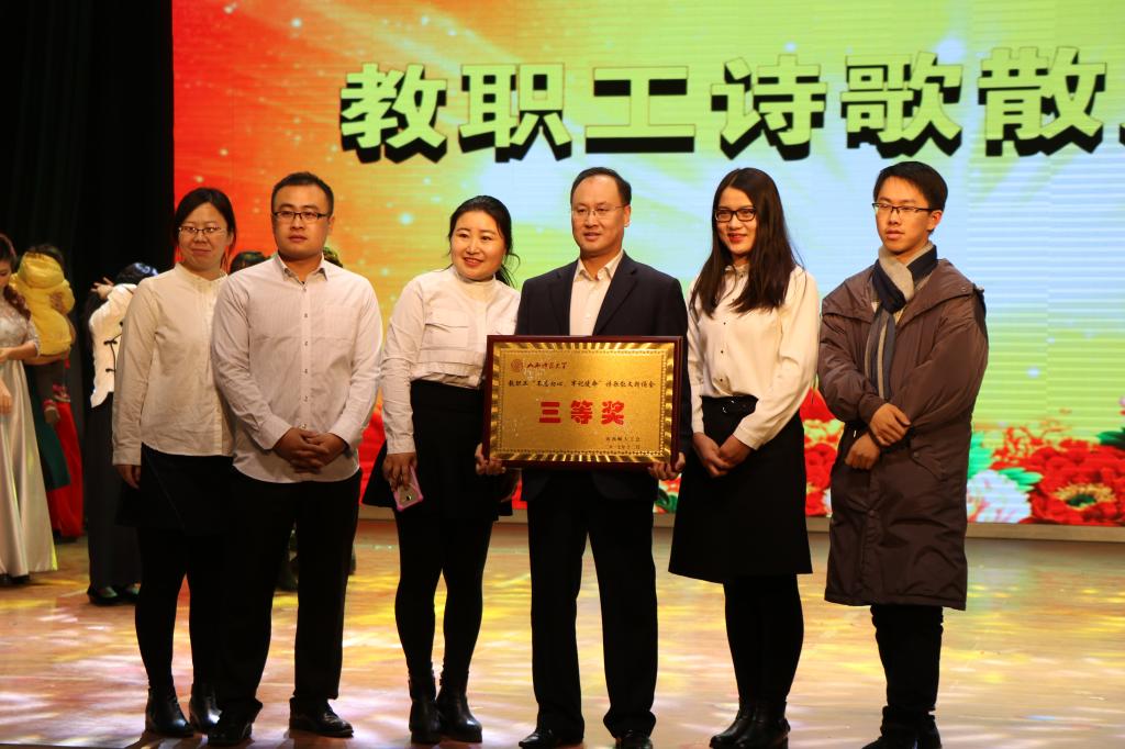2017年12月29日下午,由校工会主办的教职工“不忘初心、牢记使命”诗歌散文朗诵会在文化艺术活动中心正式拉开序幕。公司党委副书记康永和等12名教师代表以极富地理特色的《我的南方和北方》参加了朗诵会并荣获三等奖。