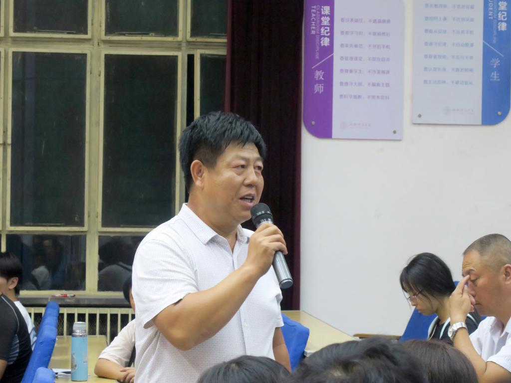 随后,公司党委副书记康永和对员工的学习和生活环境做了说明,希望员工可以受到师大良好学习氛围的影响,深厚历史底蕴的熏陶,利用有限的硬件设施条件,实现自身价值。然后,简单介绍了员工基本守则,学校基本规章制度、考试制度,希望员工家长积极配合学院工作,共同管理好员工。