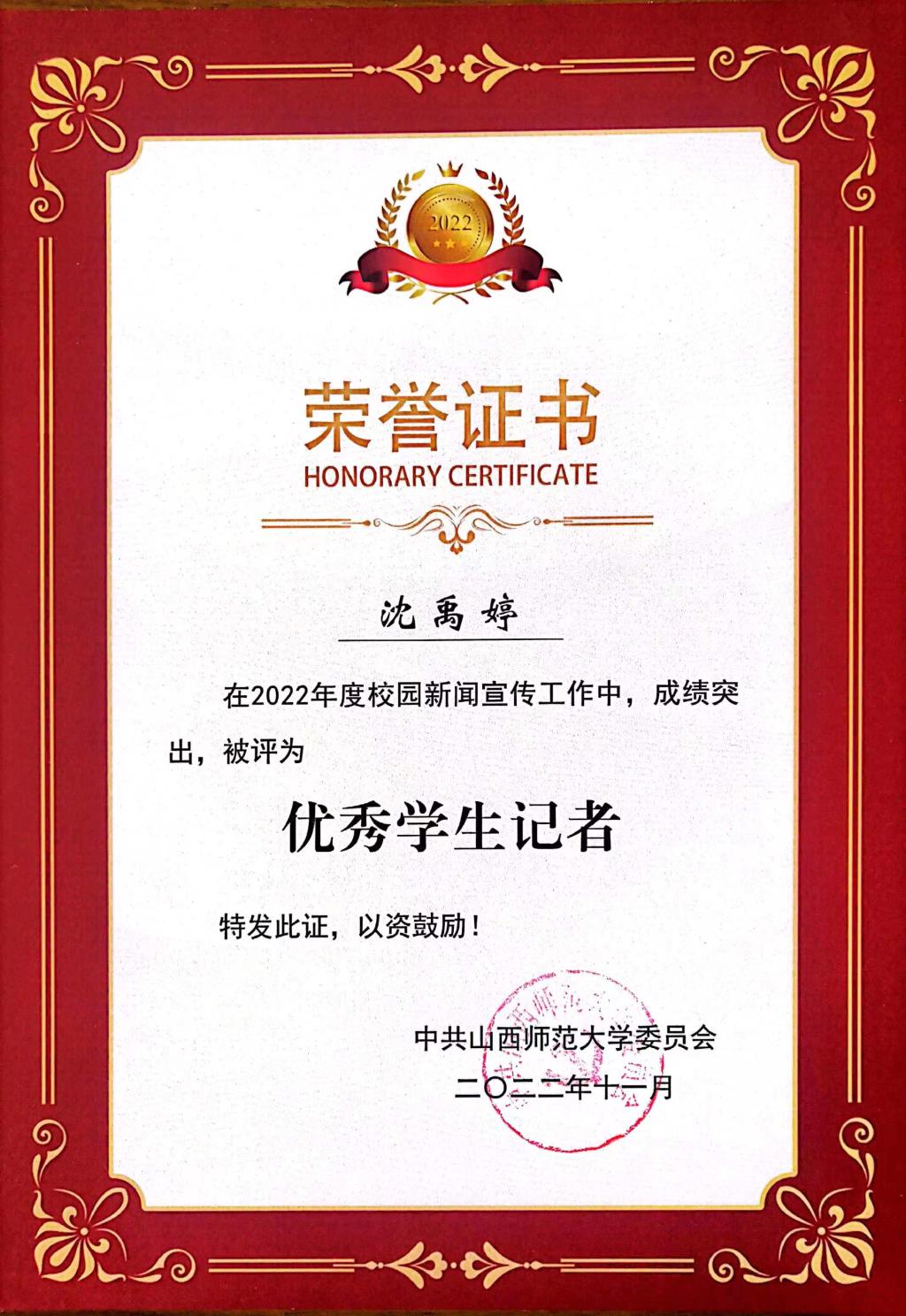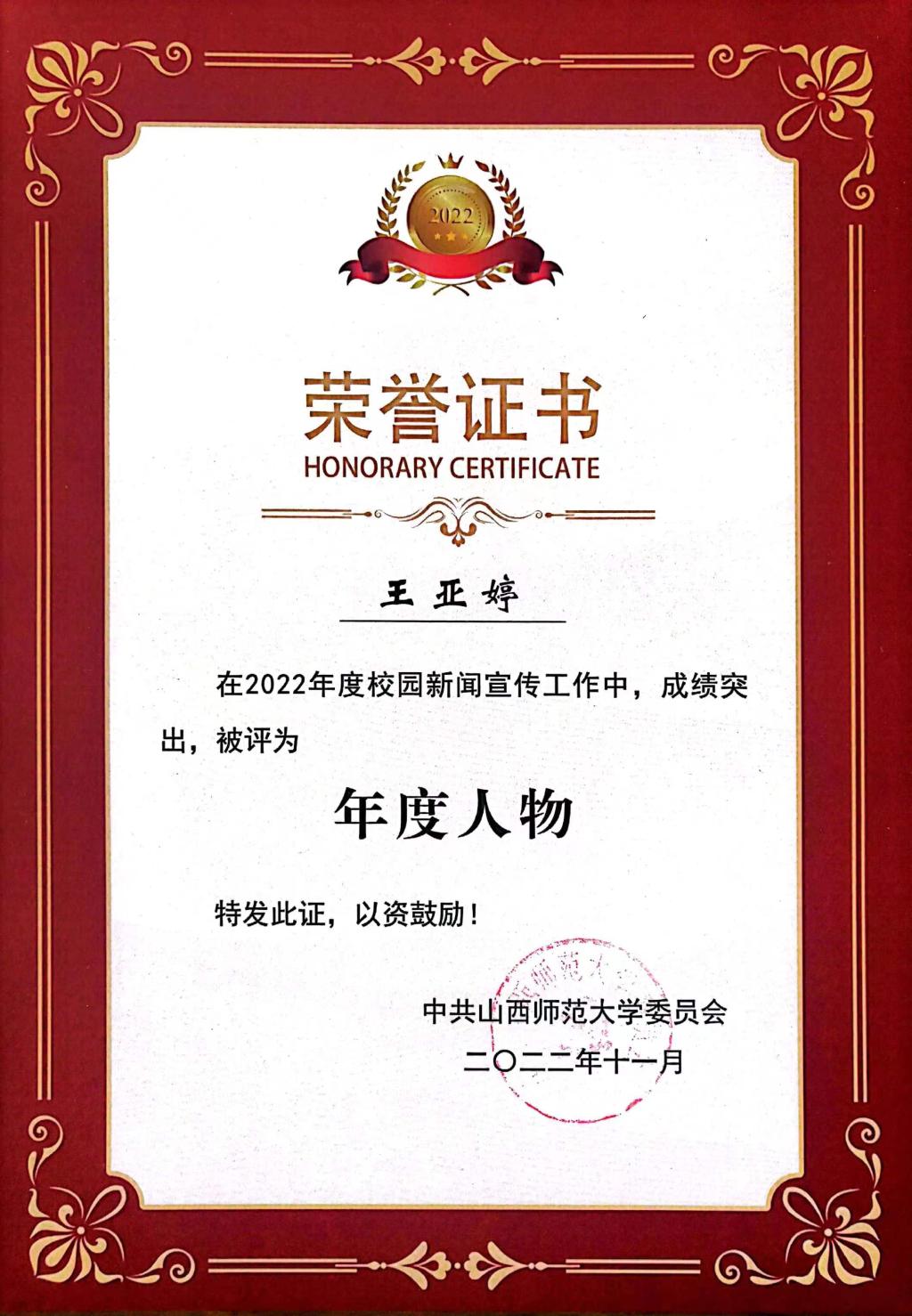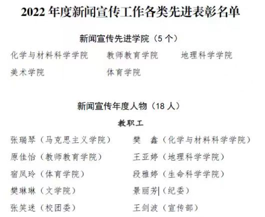 在公司下发的《关于表彰 2022 年度新闻宣传工作各类先进的决定》中,公司荣获新闻宣传“先进学院”,团委书记、宣传员王亚婷荣获新闻宣传“年度人物”,2005班沈禹婷荣获“优秀员工记者”称号。