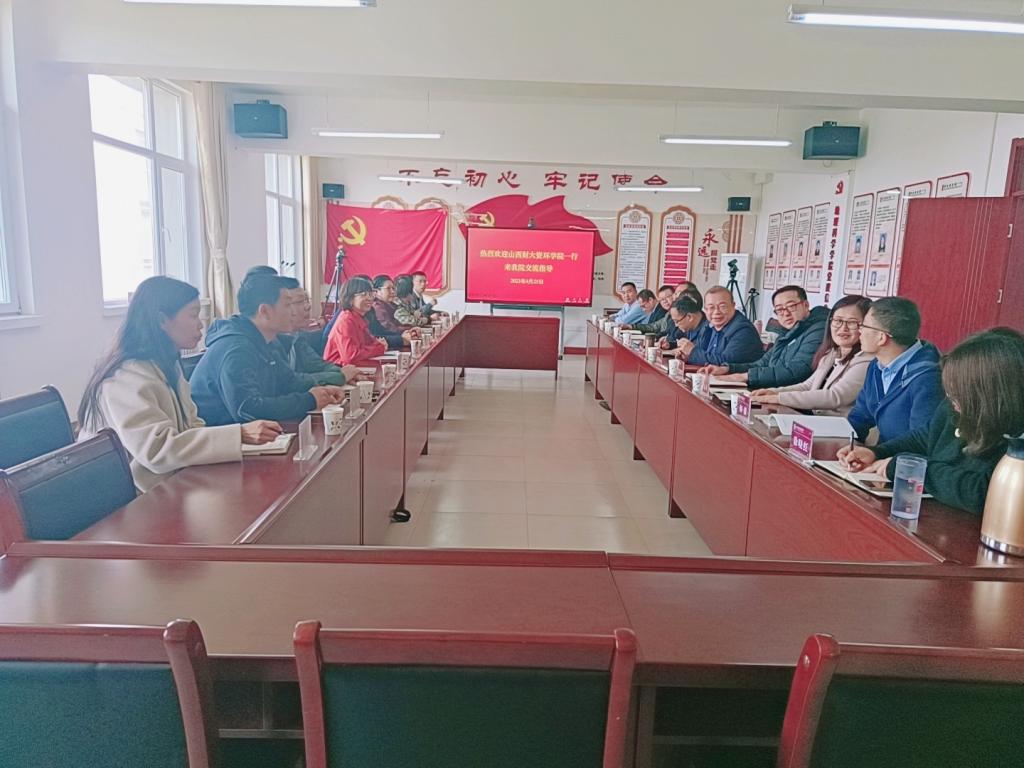 4月25日下午,山西财经大学资环学院公司党委书记李留海,经理班凤梅等一行人来公司交流指导。公司公司党委书记刘彦宏,公司党委副书记、经理张仲伍,公司党委副书记张岩青,副经理王国华,副经理刘焕才,各系主任以及山西财经大学资环学院一行成员共同参加,会议由经理张仲伍主持。
