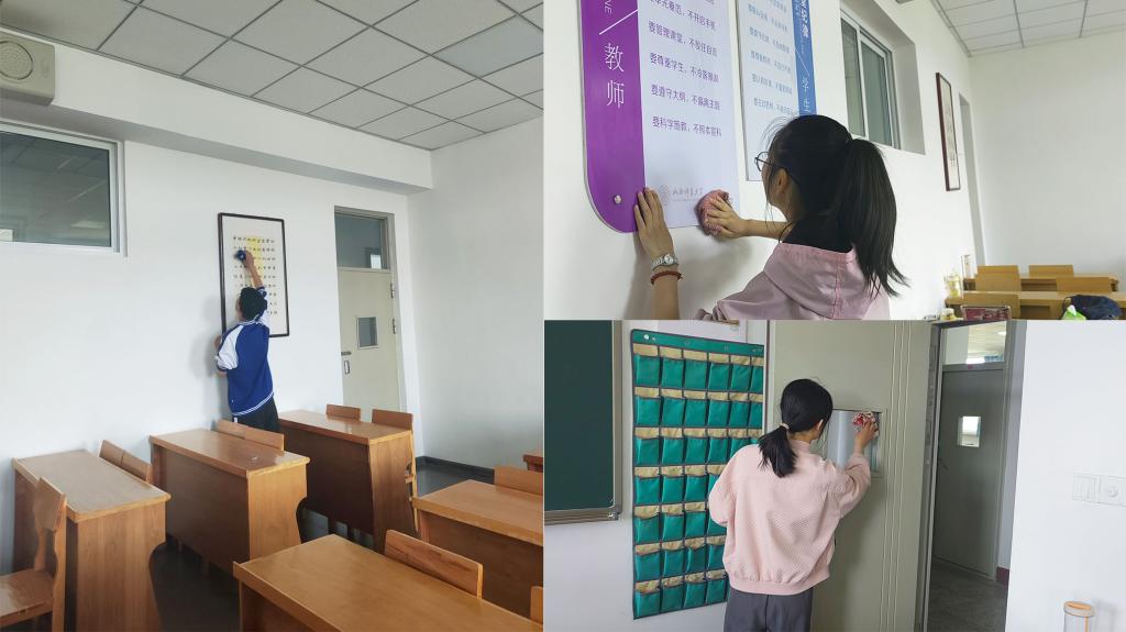 活动开始前,张齐飞书记介绍了活动开展的意义,并向大家提出了活动中的安全注意事项。随后,在相关负责人的带领下,同志们按照分组,对教室多媒体展台上的笔迹、墙板、多媒体讲台、乱涂乱画、粉笔灰等进行细致的清理,活动过程中,同志们认真负责、相互配合,认真完成了本次清洁活动。本次活动对北区3号教学楼4层的21个教室进行清洁。活动结束后,教室焕然一新。